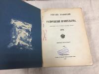 1879, изд-во: Тип. Сената, город: СПБ, стр. : 868 с. + 69 с. (Указатель), обложка: Картонный твердый переплет, формат: Увеличенный, состояние: Хорошее. Погашенный библиотечный довоенный штамп Наркомата иностранных дел. . 82 номера в одном картонажном переплете эпохи. Алфавитный перечень документов и актов, подлежащих гербовому сбору. - Возвышение акциза с водок виноградных и с пивоварения. - Воспрещение ввоза, в товарном виде, всякого рода старого платья, белья и т. п. (Говоря современным языком: запрещение ввоза "секонд-хэнда") - Изменение в форме одежы губернаторов и вице-губернаторов. - О прекращении военного положения в некоторых местностях, введенного по указу 12 апреля 1877 г. - Управление общим войсковым капиталом Оренбургского казачьего войска. - Назначение генерал-губернаторов в Санкт-Петербурге, Харькове и Одессе и предоставлением им дополнительных прав. - Меры к пресечению уклонения от прописки. - Учреждение должностных знаков. (С илл.) - Правила о знаке Красного креста (С илл.) - Недопущение в Империю румынских евреев. - Еврейские учительские институты. - Описание форменной одежды железнодорожных служащих. - О третьем восточном займе. - Отмена личного задержания как способа взыскания с неисправныз должников. - Манифесты о различных событиях в царской семье. - Об облигациях третьего восточного займа. - Устав Общества русского пароходства и торговли. - Форма шапки для полицейских урядников. - Конвенция о Всемирном почтовом Союзе. - Новый выпуск 6 миллионов рублей серебряной монеты 48 пробы. - трактат заключенный между Россией и Турцией 27 января 1879 г. в Константинополе. - Многое другое.
