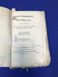 1830, изд-во: Тип. Иверсена, город: Спб., стр. : 159 стр., обложка: Издательская художественная обложка, формат: Обычный, состояние: Неразрезанный экземпляр в родных обложках. Передняя обложка выгорела. Старый рязанский штамп на титуле. . Журнал издавался с 1823 года медицинским департаментом военного министерства в Санкт-Петербурге и выходил по 6 книг в год[4]. Инициатором его создания явился директор Медицинского департамента Военного министерства, главный военно-медицинский инспектор армии, президент Медико-хирургической академии Яков Васильевич Виллие. О болезненном состоянии кровавых испражнений из матки. - О болезнях членосоединений - Аневризма грудной начальственной артерии - Живая улитка, изверженная рвотой - Отравление морфием - Беременность семью младенцами.