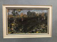 Размер в раме 24 х 20 см. Размер в свету 11 х 6, 8 см. Павел Геронтьевич Якубовский (1891 - 1945), жил и работал в Новосибирске в первой половине ХХ века, участвовал в выставках с 1912 г. Во время службы в армии с 1914 по 1922 гг. судьба бросала его по всей России от Одессы до Манчжурии. Вернувшись в Новониколаевск, он работает декоратором, театральным художником, вступает в АХРР (Ассоциацию художников революционной России), участвует в выставках в Новосибирске и Москве, работает в журналах как художник-график. В 1938 г. Якубовский принимает участие в росписи плафона Оперного театра. Он - автор и исполнитель двух "медальонов". Последний раз при жизни, (35 работ) художник экспонировал в 1940 г. на Пятой Новосибирской областной выставке (Новосибирская область тогда включала и Томскую, и Кемеровскую, и Алтайский край). Последняя выставка Якубовского П. Г. проходила в ноябре 2002 г. в Новосибирской картинной галерее.