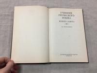 1994, изд-во: Российское Библейское Общество, город: Москва, стр. : 224 с., обложка: Твердый издательский переплет, формат: Обычный, состояние: Отличное. Книга предназначена в первую очередь для студентов, приступающих к изучению греческой Библии без всякого предварительного знакомства с древнегреческим языком, либо настолько мало сведущих, что необходимо заново пройти курс начального обучения. Книга представляет собой учебник, а не описательную грамматику. Поскольку это книга учебная, все здесь подчинено одной задаче - обучить чтению на языке. В частности, правила в описательной грамматике могут формулироваться с лапидарной краткостью, а здесь она была бы неуместна. Сделана попытка применить и обобщить пятнадцатилетний опыт автора в преподавании новозаветного греческого языка. Кроме того, в качестве примеров, иллюстрирующих правила, в описательной грамматике приводились бы действительно новозаветные тексты, а в настоящей книге они, насколько возможно, сведены к идеальной простой форме, которая далеко не всегда встречается в книгах Нового Завета
