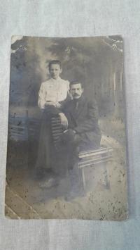 1902, город: Красноуфимск, формат: 11, 2 х 7, 6 см, состояние: Хорошее. Подсела. Иван Михайлович Андрюков и Клавдия Федоровна Андрюкова поздравляют с Пасхой. Красноуфимск. 1902 г. Четыре вида города и портрет супругов. Провинциальные частные поздравл...