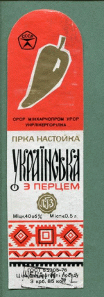 Этикетка. Горькая настойка Украинская с перцем