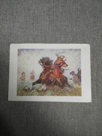 1954, изд-во: Филателистическая контора, город: Ленинград, формат: 9, 8 х 14, 4 см, состояние: Хорошее (подрезана). Иные наименования - "На плоту в шторм на Волге", "Шторм на Волге"