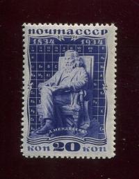 Марка. 100-летие со дня рождения Д. И. Менделеева 20 коп. 1934 г. СССР (М21)#15612396