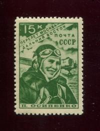 Марка. Беспосадочный перелет Москва-Дальний Восток П. Д. Осипенко 15 коп. 1939 г. СССР (М21) #15612402