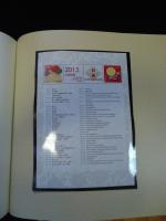 Полный годовой набор почтовых марок и блоков Китайской Народной Республики за 2013 год в иллюстрированном альбоме на мелованной бумаге в твёрдом переплёте. Марки размещены на страницах альбома в клеммташах с комментариями на китайском и английском языках