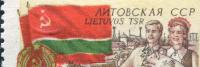 Марка. 40 лет Октябрьской революции 40 коп. 1957 г. Тонкая белая полоса на флаге (М14-111)