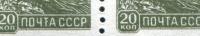 Марка. Стандартный выпуск 20 коп. 1959 г. В слове "почта " вместо "Т" -"F" (М18-150)