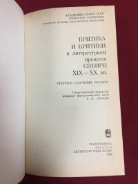 Критика и критики в литературном процессе Сибири XIX-XX вв. Сборник научных трудов.