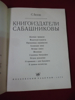 1974, изд-во: Московский рабочий., город: м., стр. : 176 стр., илл., обложка: Мягкая издательская обложка, формат: Уменьшенный, состояние: Хорошее. О жизни и деятельности русских издателей москвичей братьях Сабашниковых. Обложка оформлена логотипом издательства М. и С. Сабашниковых.