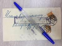 1927, город: горловка, формат: 15 х 17 см. (Складывается), состояние: Очень хорошее. Почта Горловка - Москва. Франкировано стандартной маркой с надпечаткой 8 коп. на 7 коп., зубц. 12: 12 1/4 (Загорский № 181А). Четкие почтовые штемпеля Горлiвка 14. 10. 27 - Москва 16. 10. 27. Оригинальный бланк Открытого письма с складывающимся клапаном для адреса.