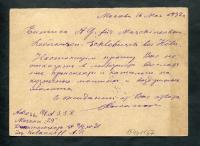 Почтовая карточка для ответа 1929 года.