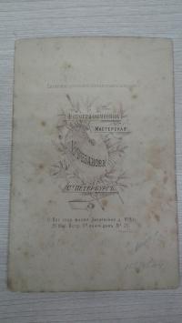 1880-е, изд-во: Фотография Брезанова, город: Спб, формат: 10, 8 х 16, 5 см., состояние: Хорошее. Кронштадский мещанин Иосиф (Осип) Михайлович Брезанов в январе 1884 года стал владельцем фотоателье в доме Тимофеева на Малой Дворянской улице. Ранее мастерская фотографа работала в доме 26 на Большой Дворянской улице. Около 1899 году перевёл фотоателье в дом 17 на Малой Дворянской улице. В январе 1888 года фотограф стал владельцем мастерской в доме 26 на 11 линии Васильевского острова. Мастерская в этом доме работала до 1902 года.