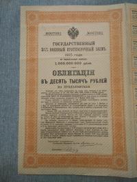 Бона. Государственный 5 1/2 % военный краткосрочный заем Облигация 10000 рублей 1915 г.