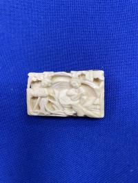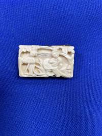 Брошь резьба по кости Романтический сюжет, метал (латунь) Китай 1940 г. г.