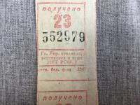 1930-е, изд-во: Гл. Управление столовых, состояние: Очень хорошее. Неизвестный науке зверь. Издатель Наркомат Торговли РСФСР. Главное Управление столовых, ресторанов и кафе. Отпечатан на московской беловой фабрике. Очень необычный номинал - 23. Сцепка из двух. Из старой новосибирской коллекции.