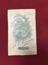 1905, изд-во: Фото Н. С. Юнышев, город: Томск, состояние: Отличное. Николай Юнышев - один из самых известных томских дореволюционных фотографов. На обороте: Снимались 10 июня 1905 г.