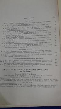 Материалы по геологии и полезным ископаемым Востока СССР.
