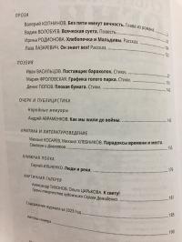 2023, изд-во: Новосибирский издательский дом, город: Новосибирск, стр. : 192 с., тираж 1500, обложка: Мягкая издательская обложка, формат: Увеличенный, состояние: Отличное. Проза: Валерий Копнинов Без пяти минут вечность. Глава из романа, Вадим Волобуев Всяческая суета. Повесть, Ирина Родионова Хлебопечка и Мальдивы. Рассказ, Лаза Лазаревич Он знает все! Рассказ. Поэзия: Иван Васильцов Поставщик барахолок. Стихи, Мария Фроловская Графика голого парка. Стихи, Денис Попов Плохая бумага. Стихи. Публицистика: Андрей Авраменко Как мы жили до войны. Критика: Михаил Косарев, Михаил Хлебников Парадоксы времени и места. Самохин и Довлатов. Книжная полка: Сергей Ильченко Люди и реки.