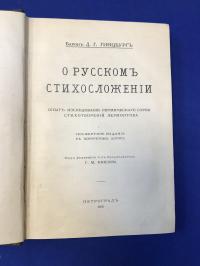 Гинцбург Д.Г., барон, О русском стихосложении. Опыт исследования ритмического строя стихотворений Лермонтова. Посмертное издание с портретом автора. Под редакцией и с предисловием Г.М.Князева.