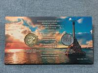В набор входит монета номиналом 5 рублей, отпечатанная в 2019 г. и жетон.