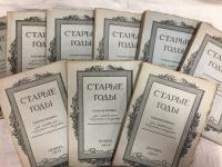 1915, изд-во: Сириус, город: Санкт-Петербург., формат: Энциклопедический, состояние: Близко к коллекционому - Коллекционное. В родных издательских обложках в сохранности практически отличной, только у № 1 - 2 небольшой надрыв верха без утерь. . Журнал `Старые Годы` возник по инициативе секретаря «Кружка любителей русских изящных изданий» П. П. Вейнера, который и стал его издателем. Другой основатель, В. А. Верещагин, стал главным редактором. Редакция располагалась в Соляном пер., 7; затем на Рыночной ул., 10 в Санкт-Петербурге. Выходил в 1907—1916 годах при Кружке любителей русских изящных изданий. Журнал печатал материалы по истории русского искусства, давал описания частных и общественных коллекций, информировал об аукционах и частных продажах произведений искусства в России и за рубежом с указанием картин и цен, знакомил с деятельностью музеев. Большое внимание в журнале уделялось проблемам сохранения памятников искусства и старины России. Среди сотрудников журнала были Г. К. Лукомский, П. П. Муратов, Н. К. Рерих, И. Э. Грабарь, В. Я. Курбатов, П. Н. Столпянский, А. Н. Кубе, С. Р. Эрнст, В. Я. Адарюков и другие.
