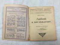 1925, изд-во: Книгоиздательство "Сеятель" Е. В. Высоцкого, город: Ленинград, стр. : 48 с., обложка: Мягкая издательская обложка, формат: Уменьшенный, состояние: Хорошее (надрывы обложки вдоль крепления, для сохранности книга прошита владельцем, небольшой сквозной след высохшей влаги по нижнему краю книги). Рассказ "Любовь и наслаждение" в переводе поэта и переводчика Вильгельма Зоргенфрея. Оформление обложки Марка Кирнарского (в издании не указан)