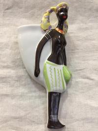 Кашпо Ваза настенная (пара) Девушки Конго и Либерия , фарфор (Коростень) СССР