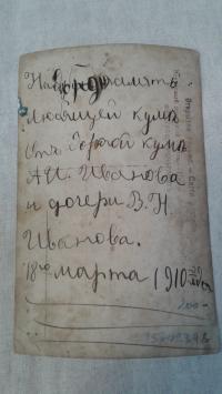 1910, изд-во: Фотография Рембрандт, город: Казань., формат: 9 х 14., состояние: Хорошее. Зимсон Александр Христофорович (люблинский мещанин) - приехал в г. Казань из г. Люблина и 21 августа 1897 г. получил разрешение на содержание фотографического заведения на Воскресенской улице в доме Эккермана, ранее принадлежавшей М. С. Мастрюкову. Заведение Зимсона, работавшее под маркой «Рембрандт», стало одним из крупных фотоателье города.
