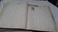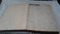 1963, город: Торонто, стр. : 4 и 8 стр. в №., обложка: Картонный переплет эпохи, формат: Очень большой 58 х 40 см., состояние: У номеров хорошее, целы, без надрывов. несколько последних номеров со слабыми следами влаги влаги в нижнем углу. Задняя крышка переплета покороблена от влаги, но защитила от нее блок. Без библиотечных штампов. Некоторые заметки отмечены карандашом. . Первая в Канаде русская газета. 6 ноября 1941 г. вышел первый номер новой газеты «Вестник». Его редактором был М. Ясный. Активный деятель рабочего русскоязычного движения в Канаде с 30- годов, в газете придерживался просоветских взглядов. В восьмистраничных номерах раздел "Литературная страница" с очень интересными публикациями. В ноябре был убит Джон Кеннеди. Много интересных заметок.