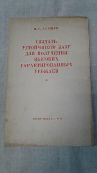1963, изд-во: Издательство политической литературы, город: Москва, стр. : 48 стр., обложка: Мягкая издательская обложка., формат: Обычный., состояние: Очень хорошее-хорошее. . Хрущев, Никита Сергеевич. Создать устойчивую базу для получения высоких га...