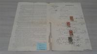 1916, город: Рыбинск, стр. : 4 с., формат: Очень большой., состояние: Хорошее. Надрывы. Все марки целы. . Заем потомственного Дворянина Виктора Федоровича и жены его Варвары Васильевны Брагинских. Немного странный документ, как бы ни было никакой рев...