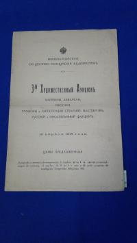 1915, город: Пг., стр. : 8 с., обложка: Мягкая издательская обложка., формат: Немного увеличенный., состояние: Хорошее. След от сгиба. Пометки красным карандашом. На задней обложке надпись простым карандашом. . Общество поощрения художников было осно...
