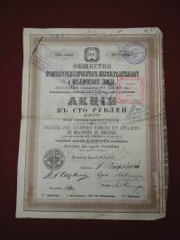 Акция в 100 руб. 1888 г. Общество Брянского рельсопрокатного...