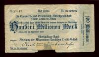 Бона. 100 миллионов (100000000) марок 1923 г. Нотгельд Цитта...