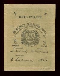 Бона. 5 рублей 1919 г. Закаспийское Временное Правительство ...