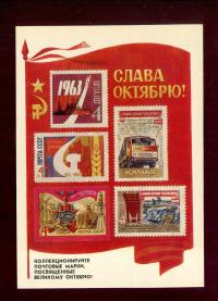 Открытка. Слава Октябрю ! Коллекционируйте почтовые марки,по...
