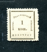 Марка. 1 коп. Земская почта. Зеньковский уезд. В слове "почт...