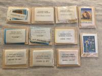 1981-1984, изд-во: Балабановская спичечная фабрика, город: Калуга, стр. : 218 этикеток, обложка: Фабричная упаковка в целлофан, состояние: Коллекционное, невскрытые упаковки в родном целлофане. Голуби - 2 одинаковых набора по 28 этикеток, Народные промыслы, Космос, Певчие птицы, Ядовитые растения, Лекарственные растения, Химки-50 лет (два набора), Обоянь 350 лет, Набор № 26 без названия.