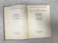 1930, изд-во: ACADEMIA, город: М. -Л., стр. : xv, 349, [2] с. ил., 2 л. портр., обложка: Издательский переплет, формат: Уменьшенный, состояние: Хорошее. Без суперобложки Утерян нахзац. Рисунок на переплете А. Н. Лео. Головка обреза тонирована. Публикуемая переписка, вскрывая социально-психологические образы обоих корреспондентов, помогает глубже уяснить то бытовое и литературное окружение, в котором находился первоклассный художник слова XIX в., дает драгоценный материал для познания интеллектуальных интересов Тургенева, разнообразных возбуждений, шедших на него от окрающей среды. Социальная биография писателя много выигрывает в своей документальности от публикации наряду с другими материалами эпистолярной текстологии. Подробно изложена история отношений Елизаветы Алексеевны Хрущовой, двоюродной сестры Ивана Тургенева, с Боткиным и в сущности оклеветанной Тургеневым.